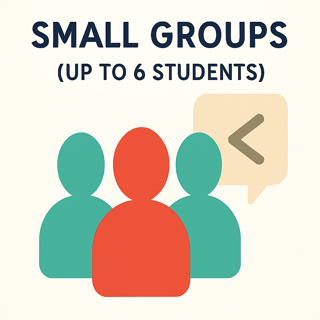 Classes are held in small groups of up to 6 students, combining individual guidance with the benefits of collaborative learning.